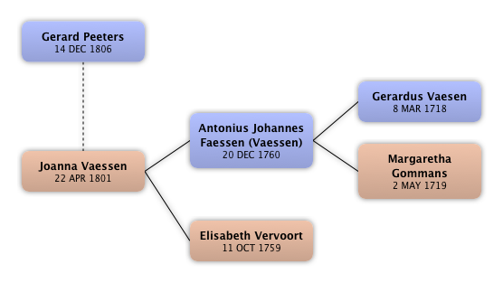 Gerard Peeters Joanna Vaessen Antonius Johannes Faessen (Vaessen) Gerardus Vaesen Margaretha Gommans Elisabeth Vervoort