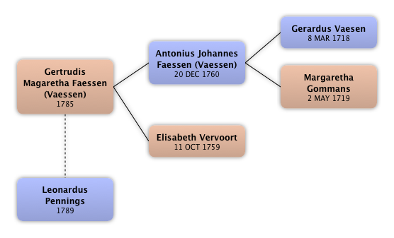 Gertrudis Magaretha Faessen (Vaessen) Antonius Johannes Faessen (Vaessen) Gerardus Vaesen Margaretha Gommans Elisabeth Vervoort Leonardus Pennings