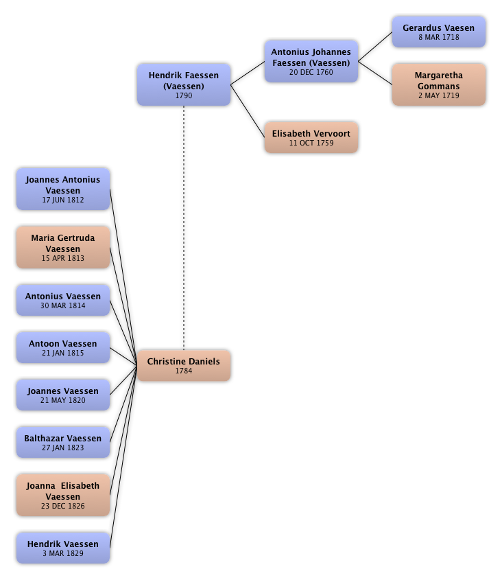 Hendrik Faessen (Vaessen) Antonius Johannes Faessen (Vaessen) Gerardus Vaesen Margaretha Gommans Elisabeth Vervoort Christine Daniels Joannes Antonius Vaessen Maria Gertruda Vaessen Antonius Vaessen Antoon Vaessen Joannes Vaessen Balthazar Vaessen Joanna  Elisabeth Vaessen Hendrik Vaessen