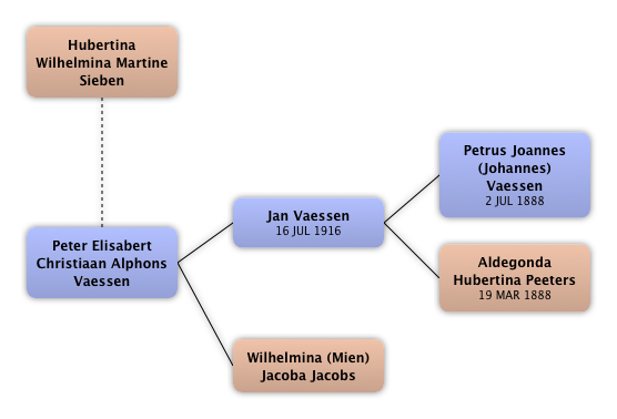 Hubertina Wilhelmina Martine Sieben Peter Elisabert Christiaan Alphons Vaessen Jan Vaessen Petrus Joannes (Johannes) Vaessen Aldegonda Hubertina Peeters Wilhelmina (Mien) Jacoba Jacobs
