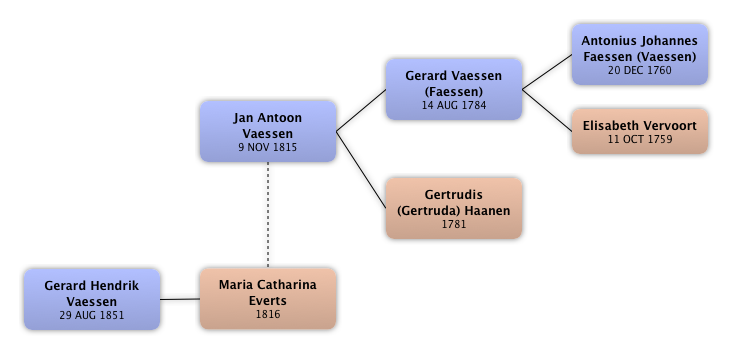 Jan Antoon Vaessen Gerard Vaessen (Faessen) Antonius Johannes Faessen (Vaessen) Elisabeth Vervoort Gertrudis (Gertruda) Haanen Maria Catharina Everts Gerard Hendrik Vaessen