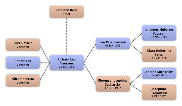 Kathleen Rose Smet Richard Leo Vaessen Leo Pius Vaessen Johannes Hubertus Vaessen Clara Hubertina Bartel Florence Josephine Sucharsky Antone Sucharsky Josephine Tarkowski Eileen Marie Vaessen Robert Leo Vaessen Alice Concetta Vaessen