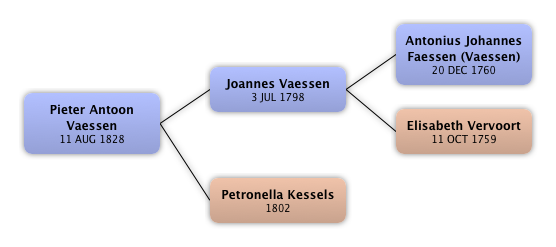 Pieter Antoon Vaessen Joannes Vaessen Antonius Johannes Faessen (Vaessen) Elisabeth Vervoort Petronella Kessels